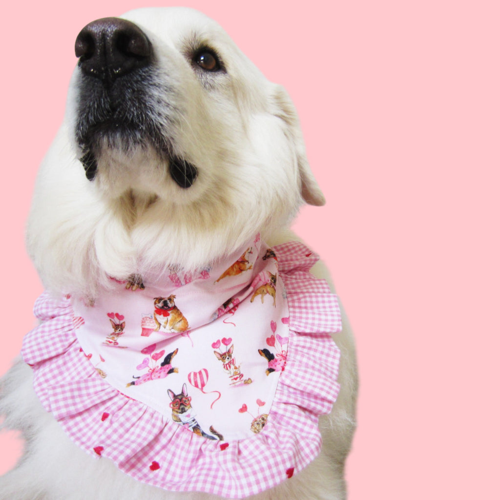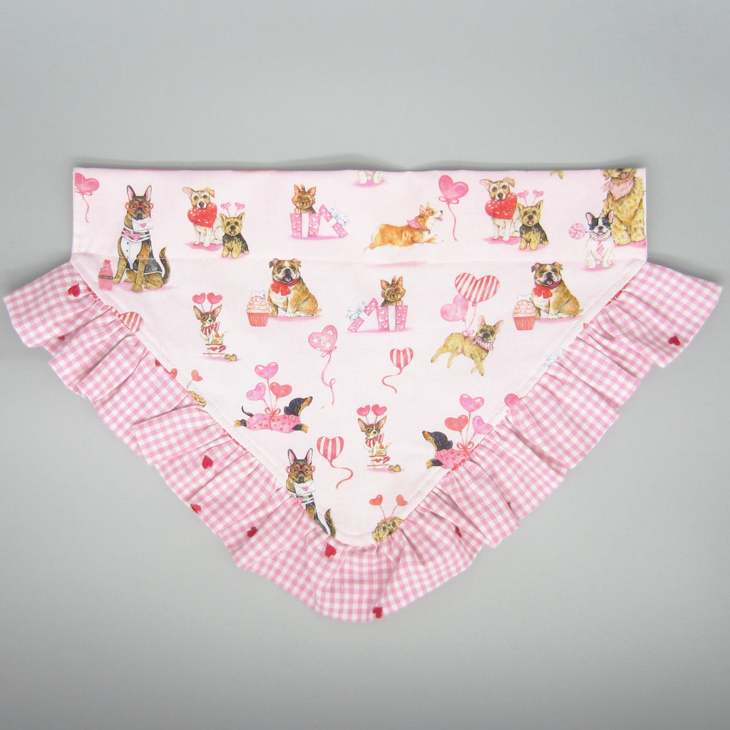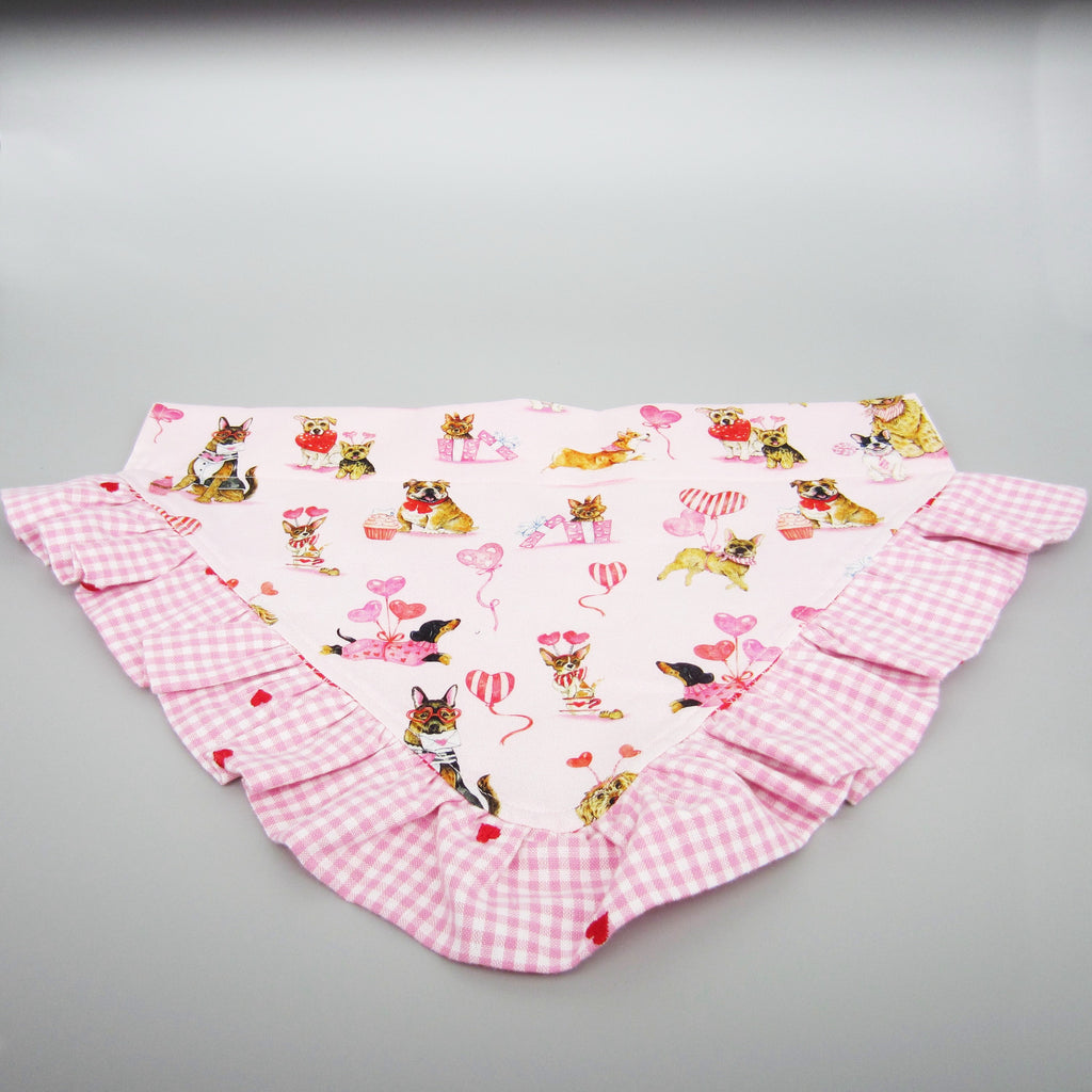 Valentine's Day Ruffled Dog Pet Bandana- Fits Over Collar 4 Sizes Available