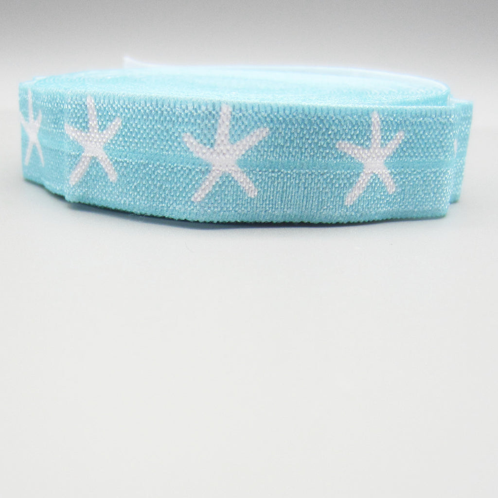 Supply Destash! 1 yard of fold over elastic in each color of Starfish prints. This elastic is 5/8" wide and is very soft. It can be used for headbands, hair ties, or in sewing underpants. This elastic is shiny and does not have the fold in the center, making it a great supply for hair ties or bracelets.